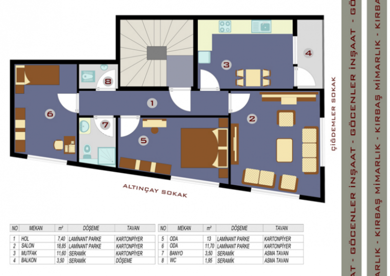 96m2 2+1 lüks daireler